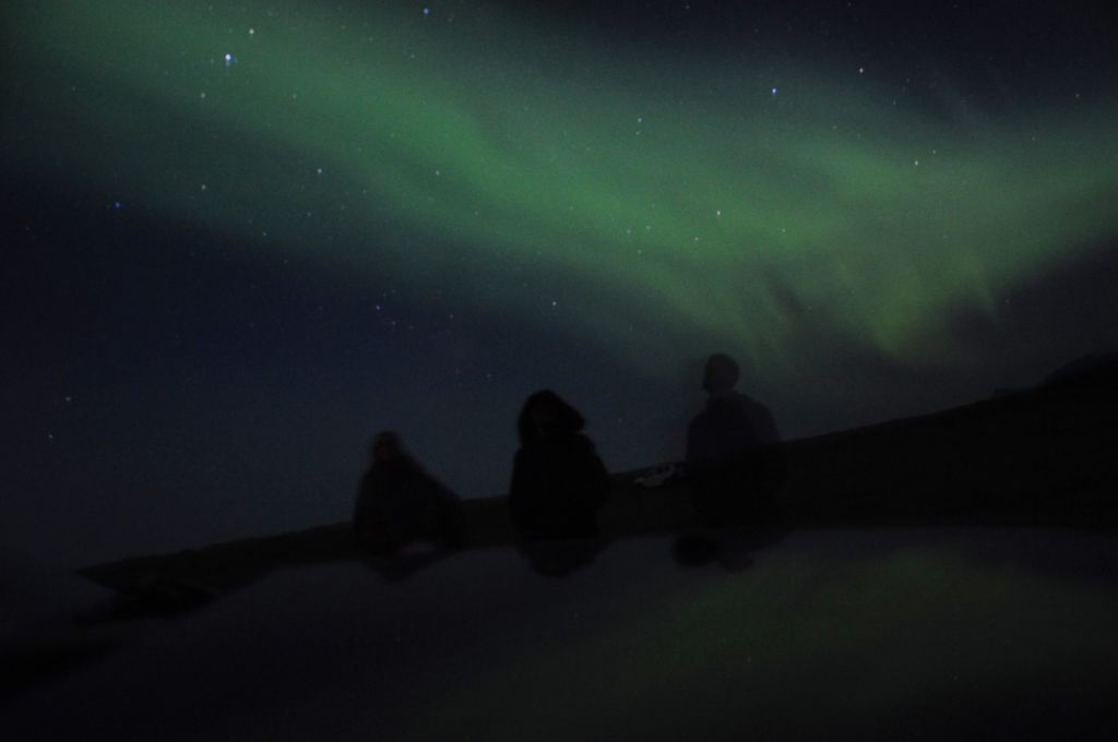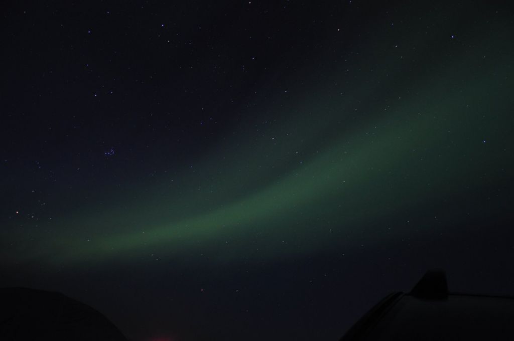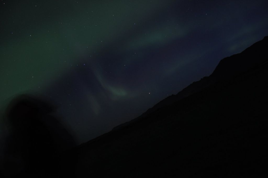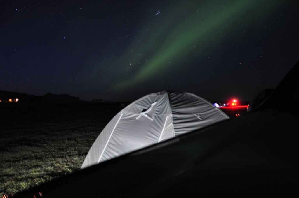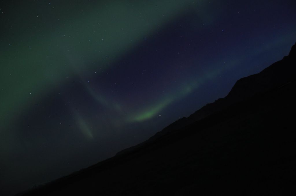 Llegamos al camping y de nuevo la señora nos esperaba para darnos otra gran noticia: su frase fue: – chicos, hoy quizá tenéis suerte y podéis ver auroras. Nuestros ojos se abrieron como platos pensando que sería un farol, le insistimos y nos comentó que la noche anterior se vieron y que las condiciones climatológicas eran muy óptimas para que volviera a ocurrir….QUÉ EMOCIÓN!!!!!!!!!!! aaaaaaaaaaaaaaarrrrrfffffffffffggggggggg íbamos a ver auroras boreales? de verdad? en Agosto? fuera de temporada? Y allí estábamos, 12h, 1h, 1.30h y al fin….aparecían, color blanco y cada vez más verde, y más color y más profundo, moviéndose de un lado a otro, haciendo formas infinitas mientras fotografiábamos se nos hicieron las 4 de la mañana, pero mereció muchísimo la pena. De un día que empezó siendo normal, acabó siendo uno de las mejores noches del viaje.
