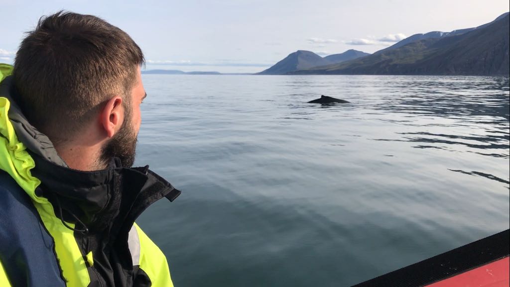 Llegamos a Húsavik, un pueblo pesquero situado en el mar de Groenlandia, en la bahía Skjálfandi, al norte de Islandia, a unos 91 kilómetros de Akureyri, la capital del norte de Islandia. Desde hace unos años, Húsavik se ha convertido en el punto más importante para el avistamiento de ballenas.