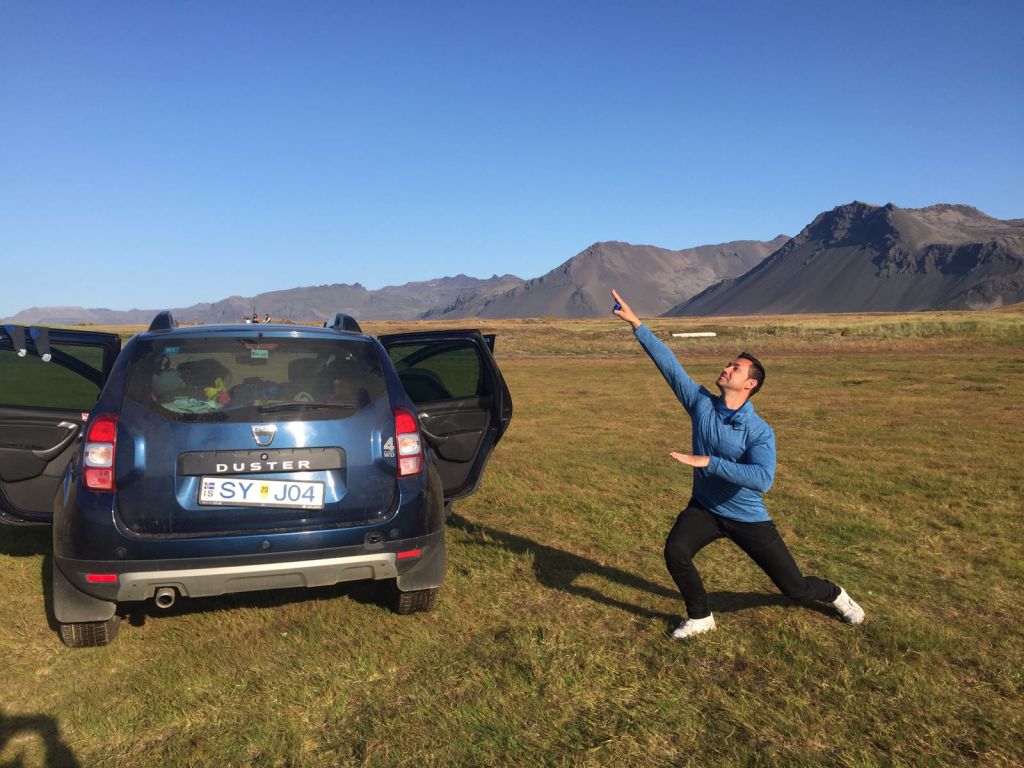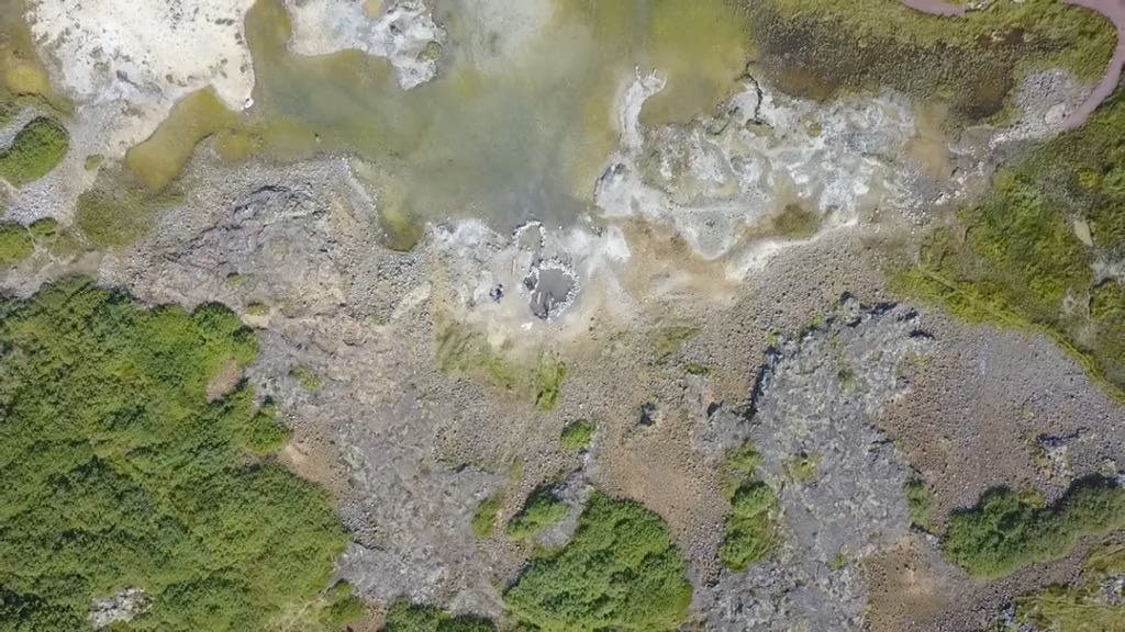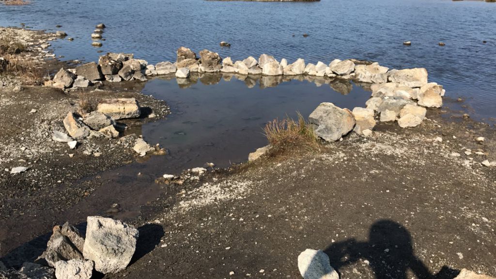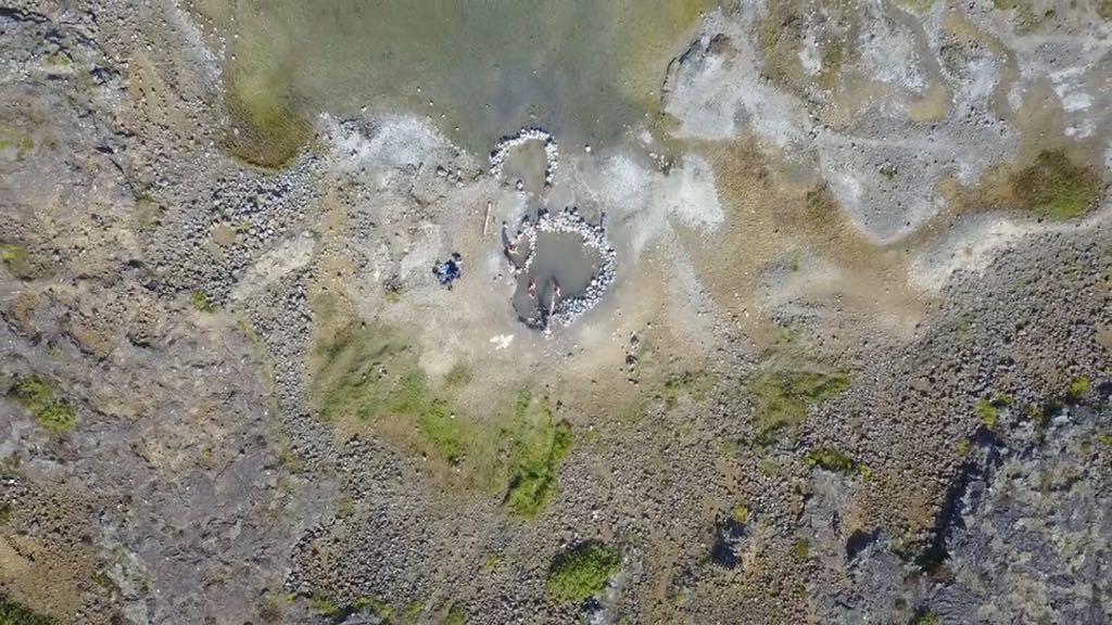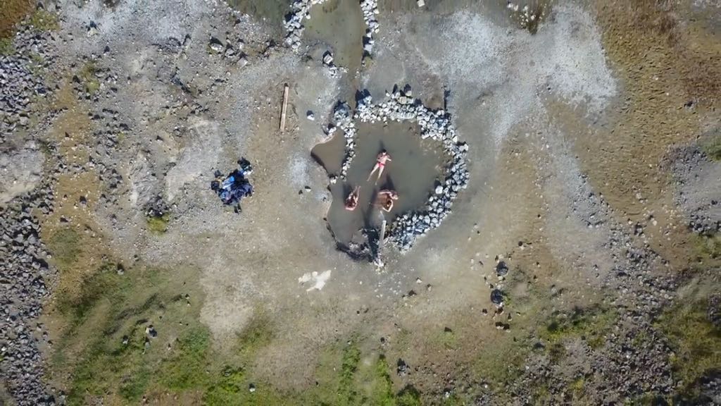 Recogemos y nos dirigimos a Landbrotalaug, punto donde se encontraba la última poza de agua caliente natural que probaríamos en Islandia. Un lugar en el que explorar porque tiene distintos puntos con agua caliente. Teníamos pensado bañarnos en una de las mas pequeñas, pero al llegar, había un grupo de gente en ella y en cola varios más, por lo que decidimos explorar el terreno hasta encontrar otro punto donde estar lo más solos posibles, y lo encontramos 🙂