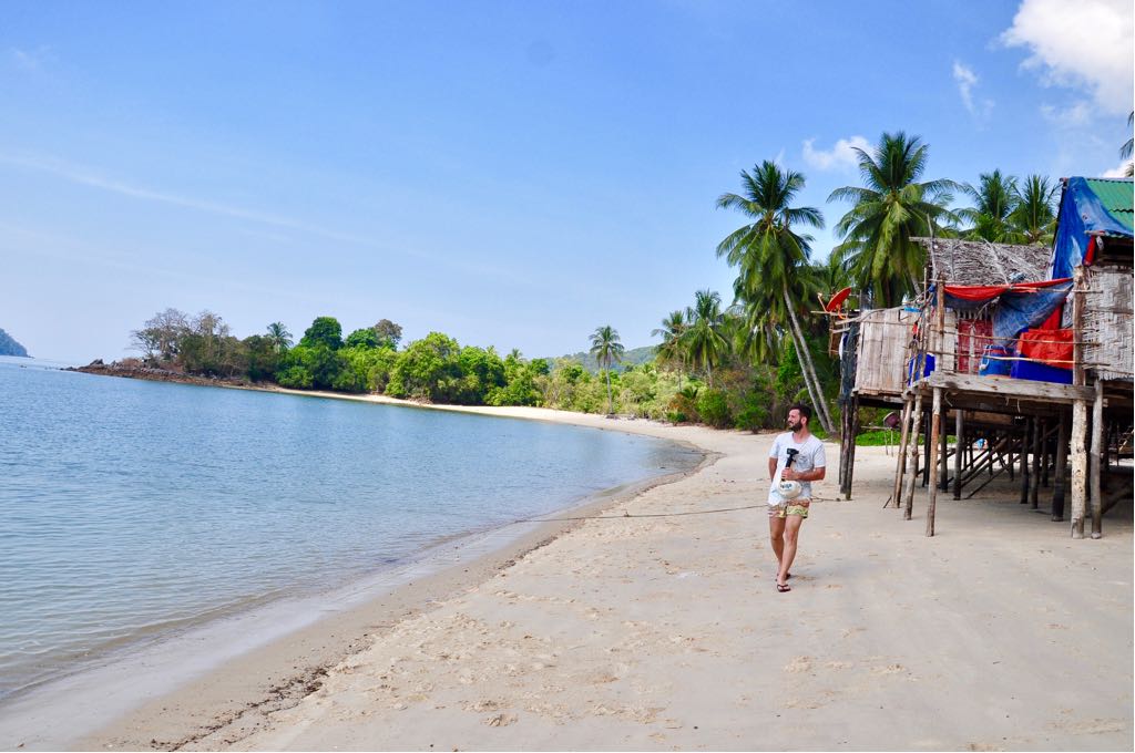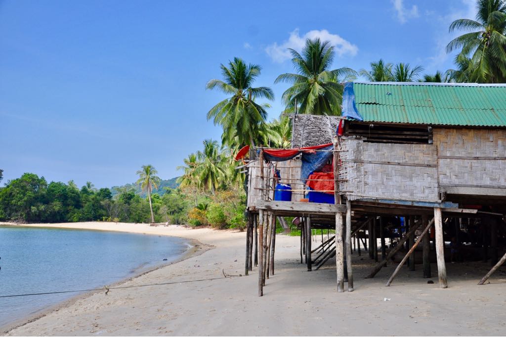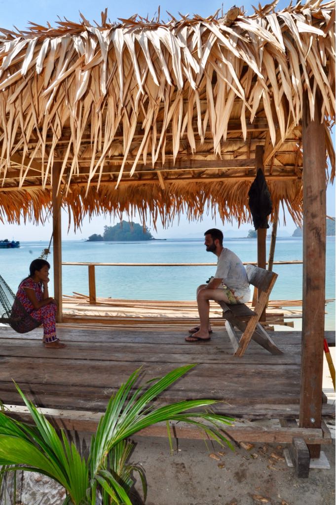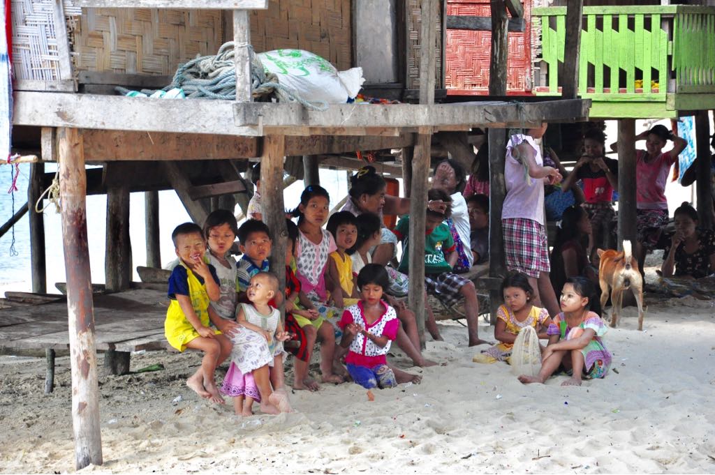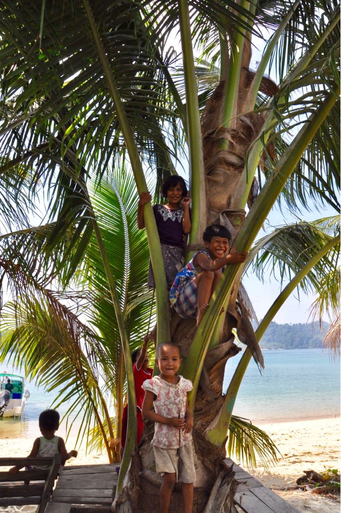 Siguiente parada, y después de casi 3 horas, llegamos a Gipsy Village, pueblo de los llamados gitanos del mar, nómadas en Mergui. Aquí si, aquí ya empezamos a alegrarnos…aquello ya empezaba a ser lo que habíamos imaginado de una excursión de islas en Asia. Para los Gipsy el mar siempre ha sido su medio de vida: comen pescados y mariscos que les da su naturaleza, y de hecho fué lo que nos pusieron para comer, junto a la bebida, un coco abierto a machete para bebernos el agua con carne gelatinosa de coco joven 🙂 en la comida conocimos a Sarr Ram y Megan, una pareja encantadora que viven en Ámsterdam y estaban visitando por navidad a la familia de Sarr Ram. Nos escucharon hablar castellano, a mi especialmente quejarme de la comida (sólo comí arroz aunque la comida tenía una pinta estupenda, no tenía ganas de comer y que de vuelta me sentara mal) y Albert lo comió todo y él nos dijo en castellano que si éramos españoles. Sorprendidos le contestamos que si y le preguntamos cómo hablaba el idioma. Nos explicó que estuvo una temporada en Ibiza haciendo sushi y de ahí empezamos a reír y pasarlo muy bien 🙂 Nos queda pendiente visita a Ámsterdam que sin duda iremos a visitarle.