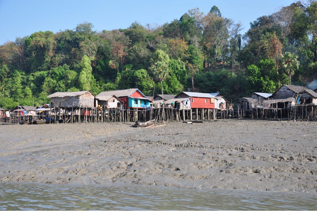 Llegamos al puerto de Myeik para coger la barca y descubrimos un puerto sucio, la marea baja deja al descubierto toda la suciedad que hay y el paisaje es desolador. Nuestros sentimientos eran una montaña rusa, nos preguntábamos todavía qué íbamos a descubrir ese día. A momentos pensábamos que era el paraíso, a momentos era como decepcionante, pero ahí estábamos ya, no había marcha atrás ni queríamos que la hubiera. Saltamos entre los botes hasta llegar a la barca, una lancha para unas 20/ 30 personas.